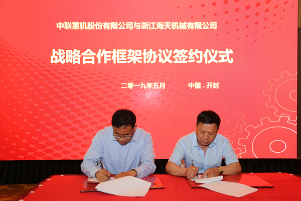 时当暮春,序接盛夏,缔约古汴,宇内清明。2019年5月28日,浙江海天机械有限公司陈正华董事长和中联重机陈冠迎副总裁就首批200台160马力拖拉机动力换挡变速箱合作在中联重机开封工业园举办了隆重的战略合作签约仪式,这标志着浙江海天机械有限公司动力换挡变速箱的自主研发项目走上新台阶,迈向新胜利,这更是农机工业史上的一道亮丽风景线。